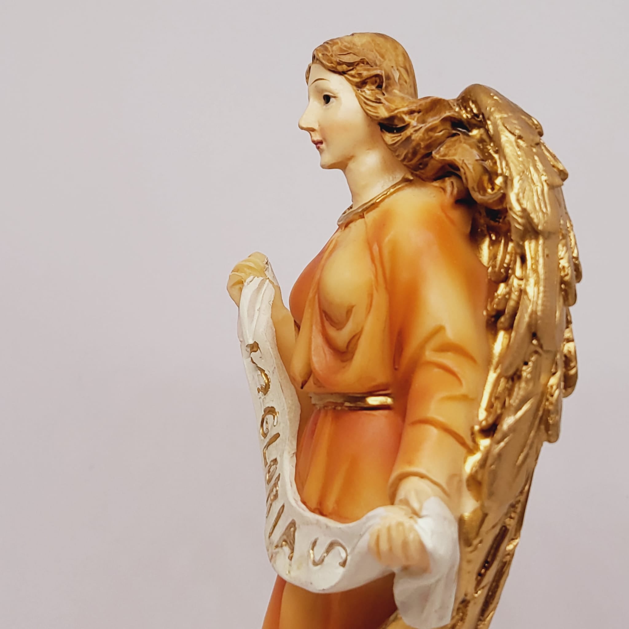 This lovely Gloria Angel figurine is part #1 from the 9 pieces that make up our exclusive nativity scene.